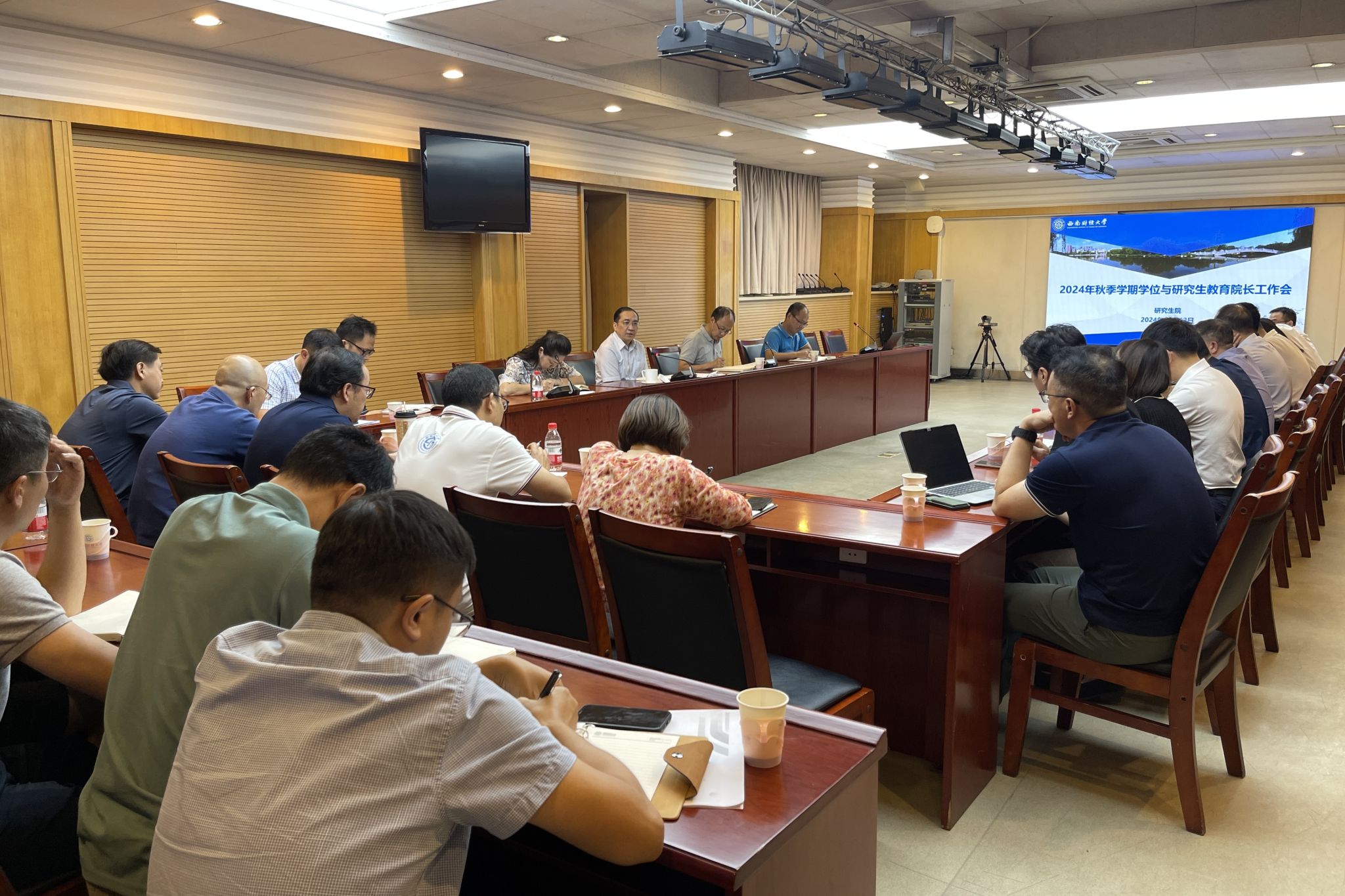 9月13日下午,学校2024年秋季学期学位与研究生教育院长工作会在腾骧楼101会议室召开。党委常委、副校长史代敏出席会议,研究生院负责人、各学院(研究院)分管研究生教育工作负责人和研究生教学秘书参加会议。