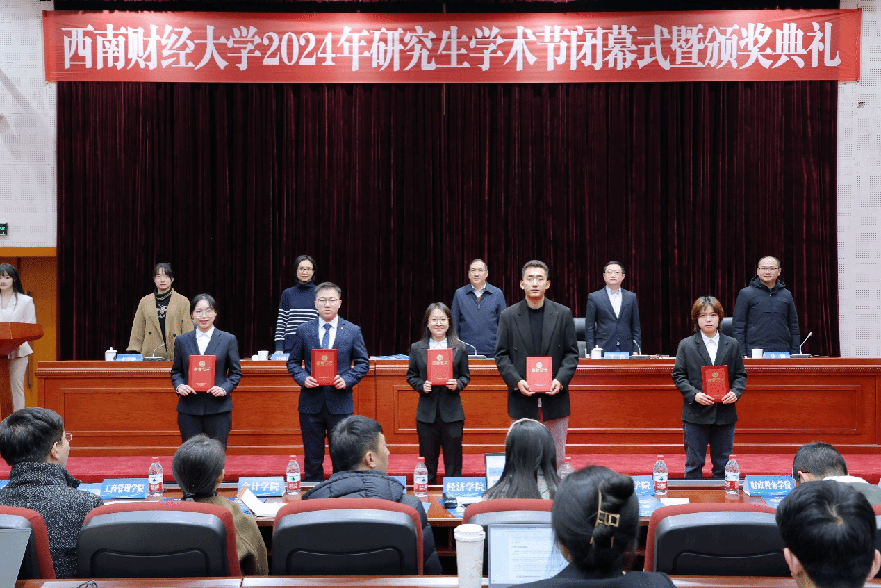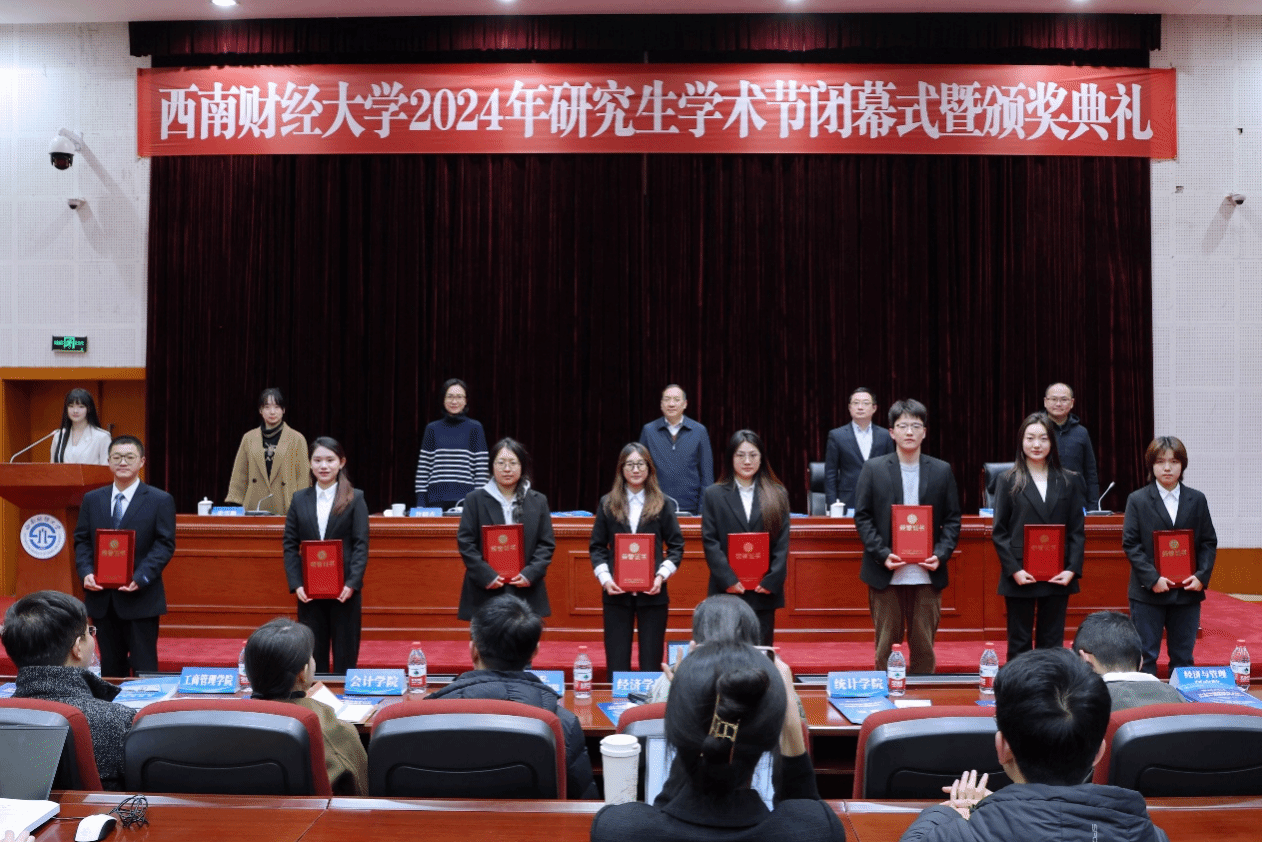 研究生院院长王珏宣读《关于表彰西南财经大学2024年研究生学术节优秀案例、优秀论文、优秀组织单位的决定》。而后,史代敏与相关职能部门负责人向获奖代表逐一颁发获奖证书,并向获奖案例、论文的作者以及优秀组织单位表示祝贺。