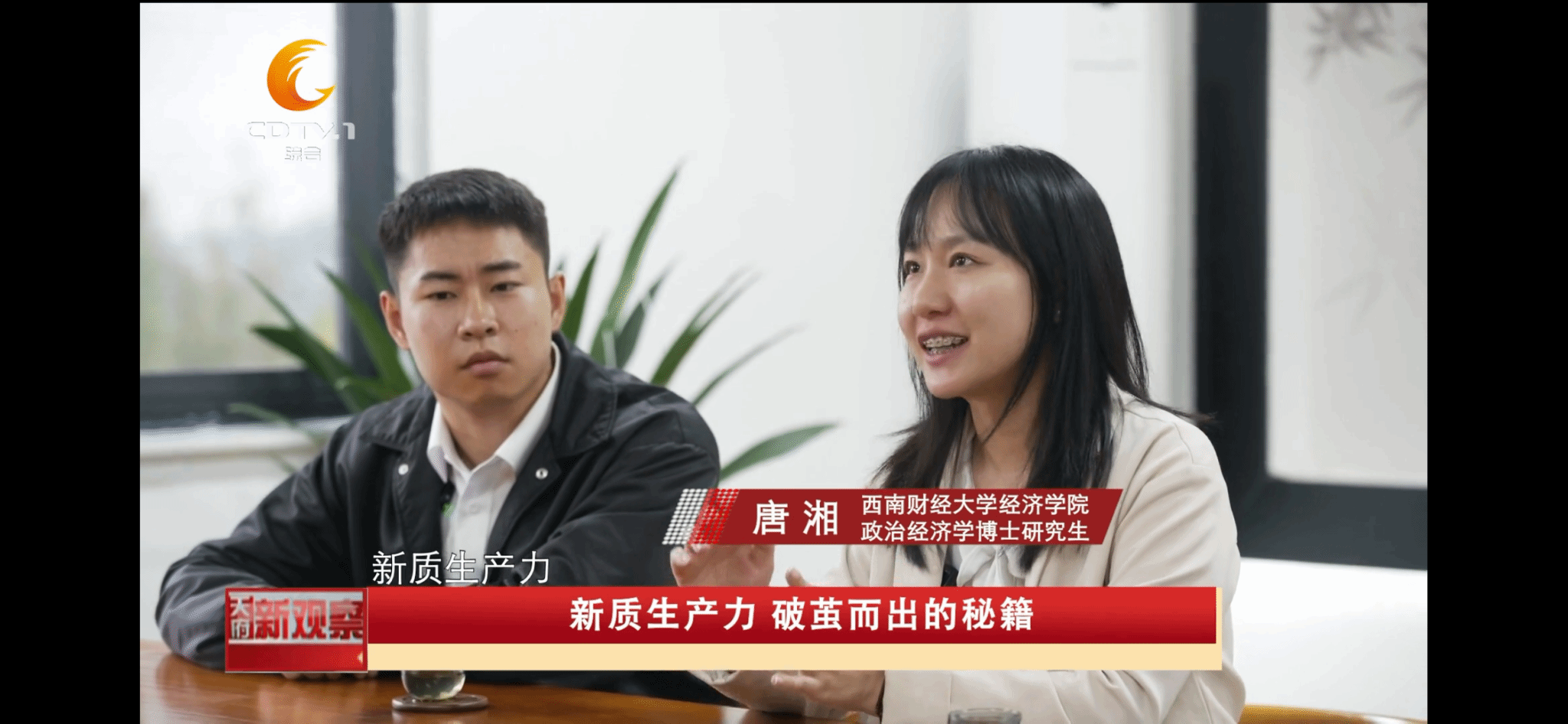 进入博士阶段,她始终牢记习近平总书记“把论文写在祖国大地上”的嘱托,坚持将理论研究与中国实践紧密结合。从梁家河的知青岁月探寻中国发展密码,到深入郫县豆瓣工厂调研数字化转型,再到剖析低空经济创新路径,这些实践经历让她深刻体会到中国特色社会主义政治经济学的理论魅力与现实解释力。依托学校和学院的支持,她积极参与高水平学术会议10余场,与学界泰斗和青年学者深入交流,学术视野得到极大拓展。在校期间,她在《学术月刊》《世界社会科学》《政治经济学评论》等CSSCI核心期刊发表数字经济、新质生产力相关论文13篇,多篇成果被《新华文摘》《人大复印报刊资料》及“学习强国”平台全文转载;作为核心成员参与6项国家级、省部级课题研究,撰写的资政报告获省部级领导批示;在《四川日报》等主流媒体发表理论评论文章,并接受成都电视台新质生产力专题采访,积极推动学术成果的社会转化与理论传播。