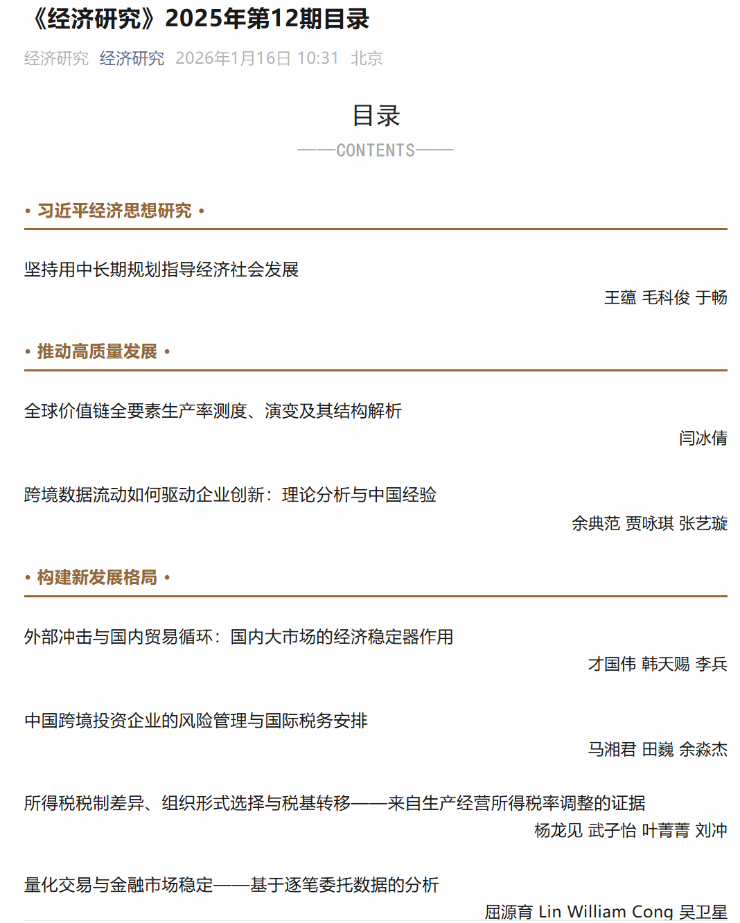 近日,我校经济与管理研究院区域经济学专业2024级博士研究生谢欣桐(通讯作者)和财政税务学院张楠教授、刘蓉教授共同撰写的论文《城市公共服务空间匹配与市场性收入均等》在《经济研究》2025年第12期刊出。