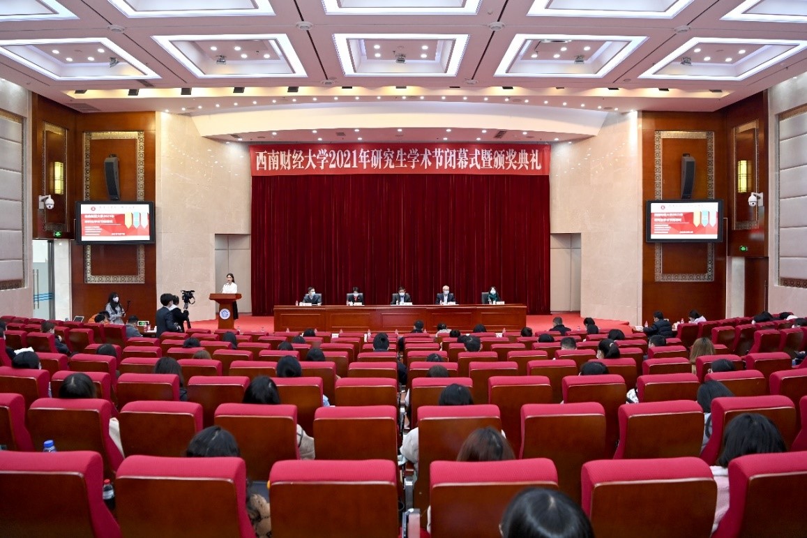 曾道荣宣读《关于表彰西南财经大学2021年研究生学术节优秀论文的决定》,向优秀论文获奖作者致以热烈祝贺。