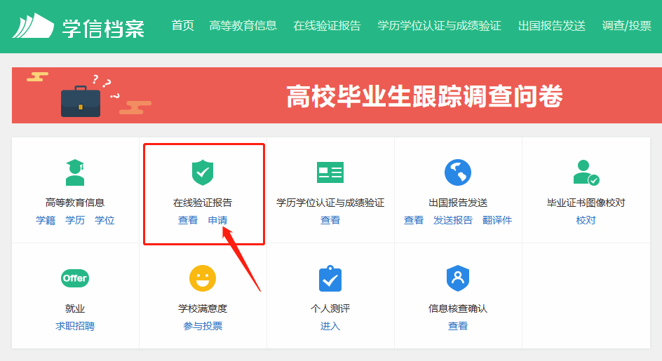 毕业生登录中国高等教育学生信息网(简称“学信网”)(网址:http://www.chsi.com.cn),登录“学信档案”后进入“在线验证报告”可申请获得《教育部学历证书电子注册备案表》《中国高等教育学位在线验证报告》中文版;进入“出国报告发送”可申请《教育部学历证书电子注册备案表》《中国高等教育学位在线验证报告》翻译件(英文版)。