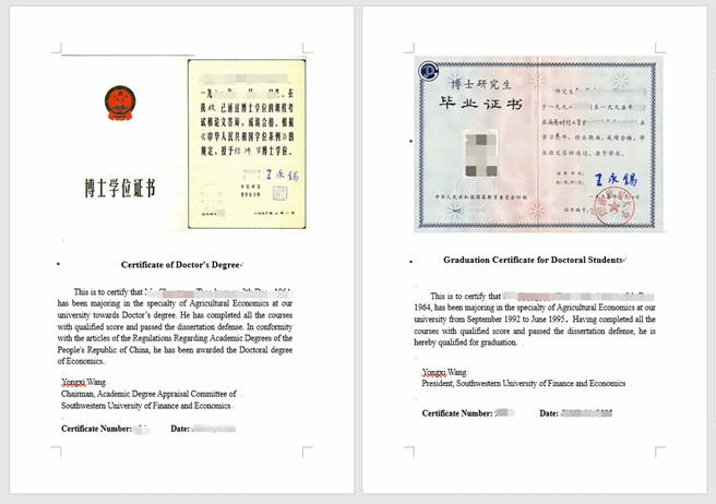 1.毕业证书和学位证书翻译件请按照以下格式自行准备:一张A4纸张,上半部分为证书的清晰照片,下半部分为对照英文翻译内容。